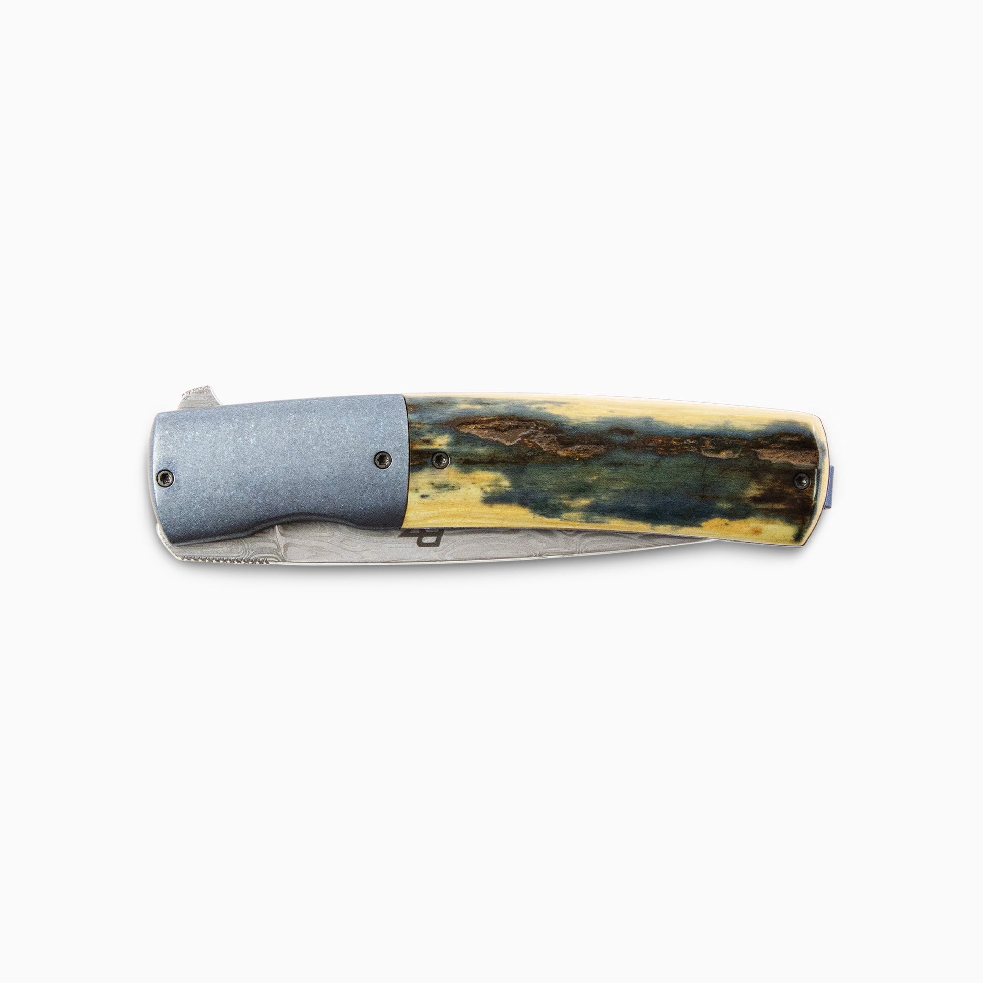 Brad Zinker - Custom FR 3.0 Linerlock Damasteel Flipper w/ Mammoth Ivory Scales & Blue Zirc Bolsters
