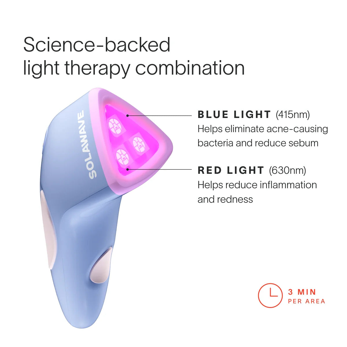 This FDA-cleared acne-fighting powerhouse uses both Blue Light Therapy (415 nm) and Red Light Therapy (630 nm) to spot-treat blemishes at all stages of development. Bye Acne works to clear active pimples, prevent future breakouts, and calm redness and inflammation from acne-causing bacteria.