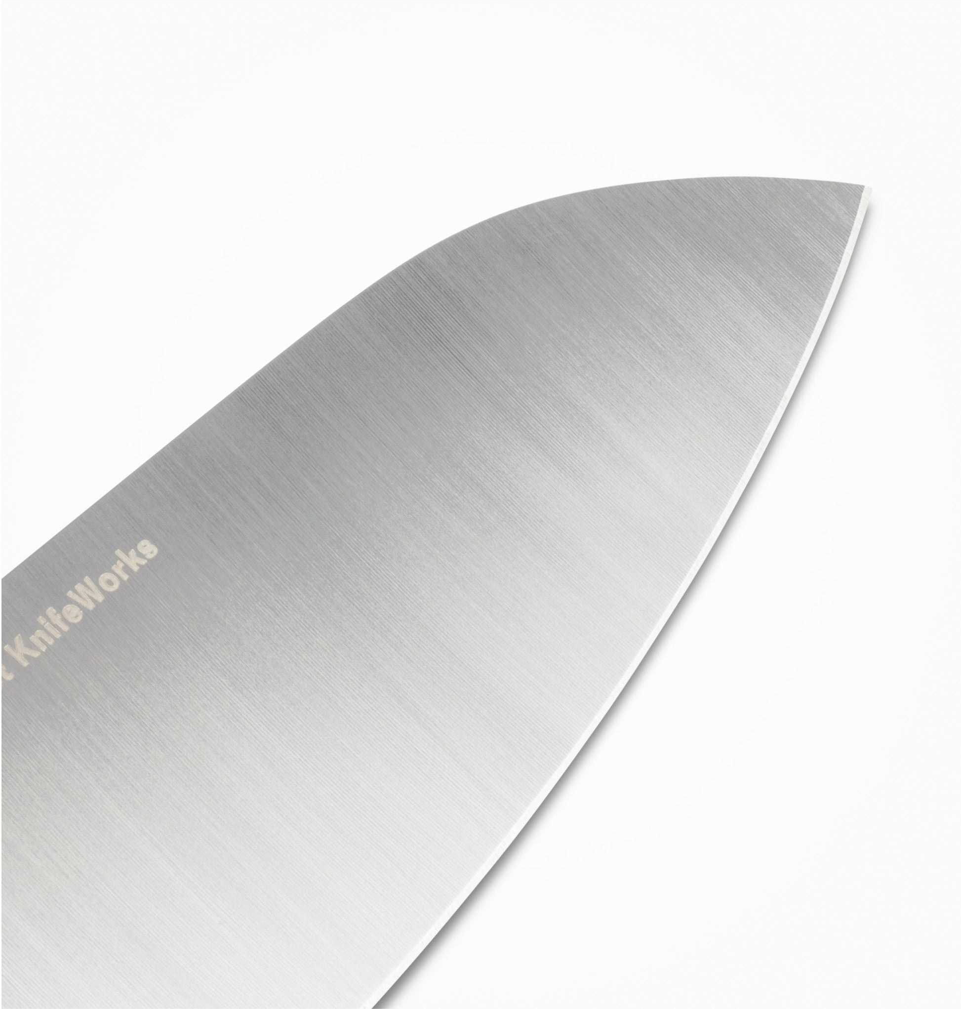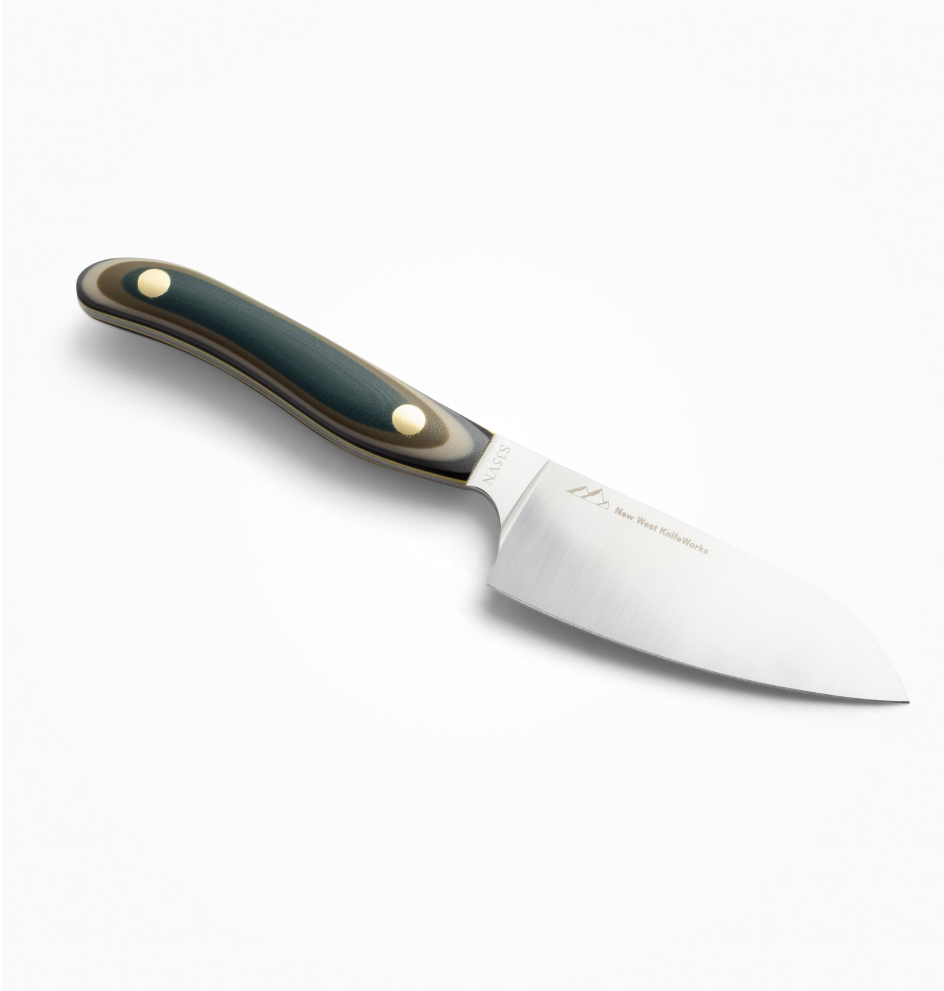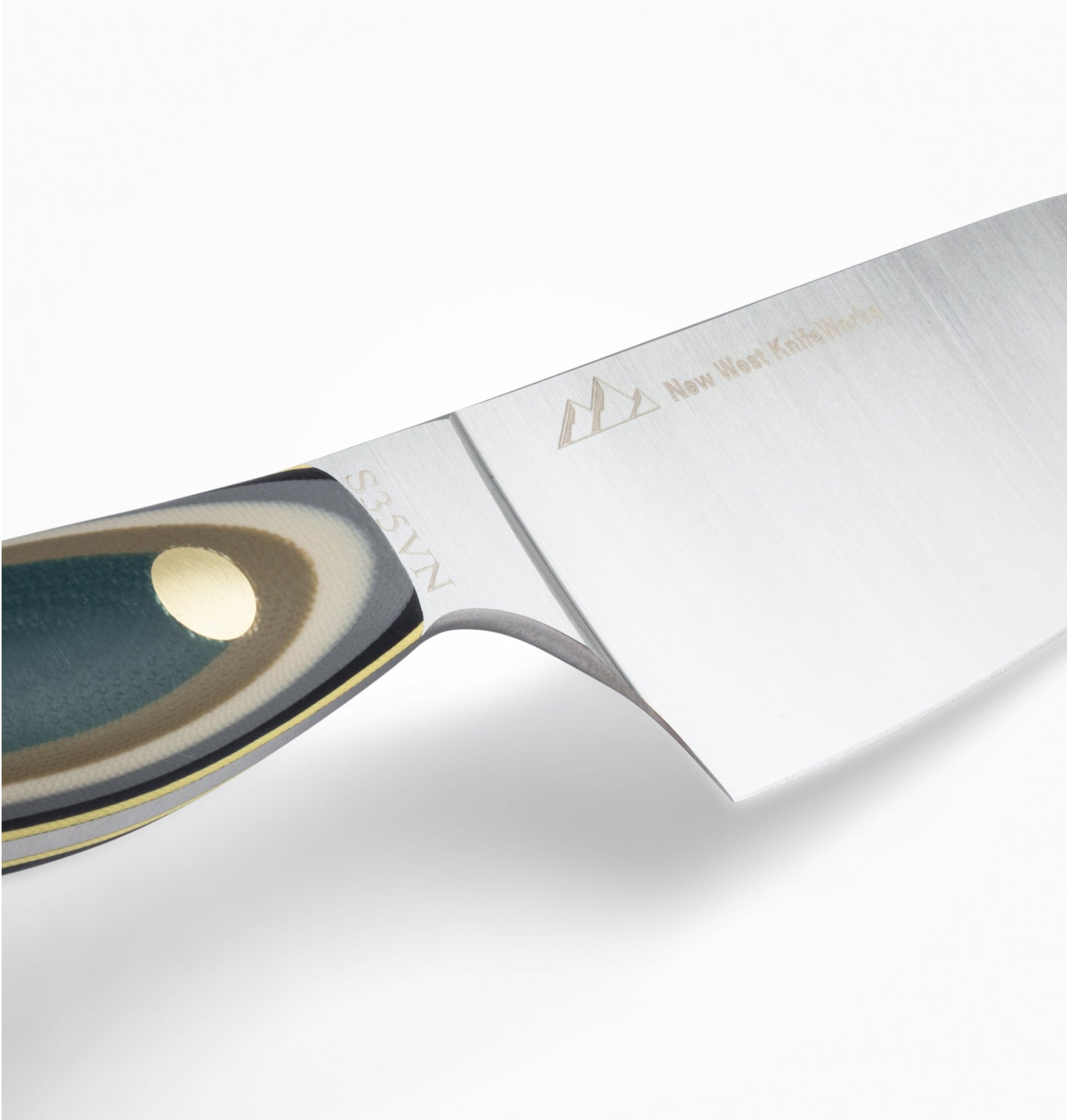 This signature knife has been a New West classic since its award-winning debut at the nations’ best fine art and craft shows over 25 years ago. A very manageable size, stout handle, and curved belly are ideal for making things like mirepoix. The unique shape makes it a welcome addition to just about any collection. A beautiful gift that gets used every day is a constant reminder of affection AND a wonderful incentive to fall in love with cooking and a healthier lifestyle.