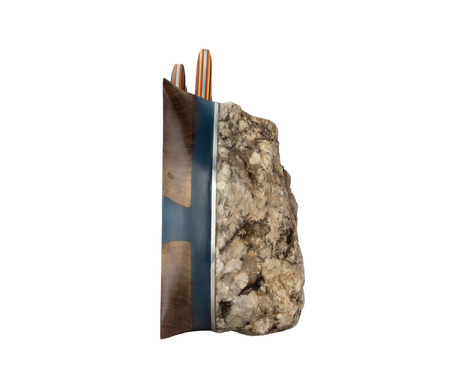 Made with Granite and Mica, Black Walnut, Azure Blue Resin, and an Aluminum accent band.